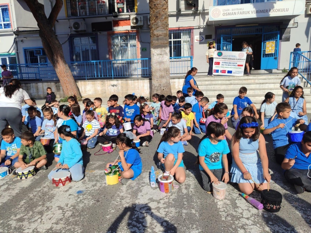 Okul müdürü Özlem YAĞAN, sınıf öğretmenleri Gülşen HORLU ve Sibel KARA , Polonya'nın Siedlce şehrinde katıldıkları Erasmus+ işbaşı gözlem projesinde gözlemledikleri yöntem ve teknikleri okulumuzda uygulamaktadırlar. Bu kapsamda 15/05/2025 tarihinde "Zorbalıga Hayır" farkındalık ritim çalışması yapılmıştır. Perküsyon, Ritim ,dans figürleri ,müzik ile olumsuz duyguları azaltarak zorbalığın ortaya çıkmasını önlemek amacıyla Sibel KARA ve Gülşen HORLU öğretmenlerimizin rehberliğinde öğrencilerimiz mavi ve sarı renklerde giyinerek , geri dönüşüm malzemeleri ile hazırladıkları aletlerle etkinliğe katıldırlar.